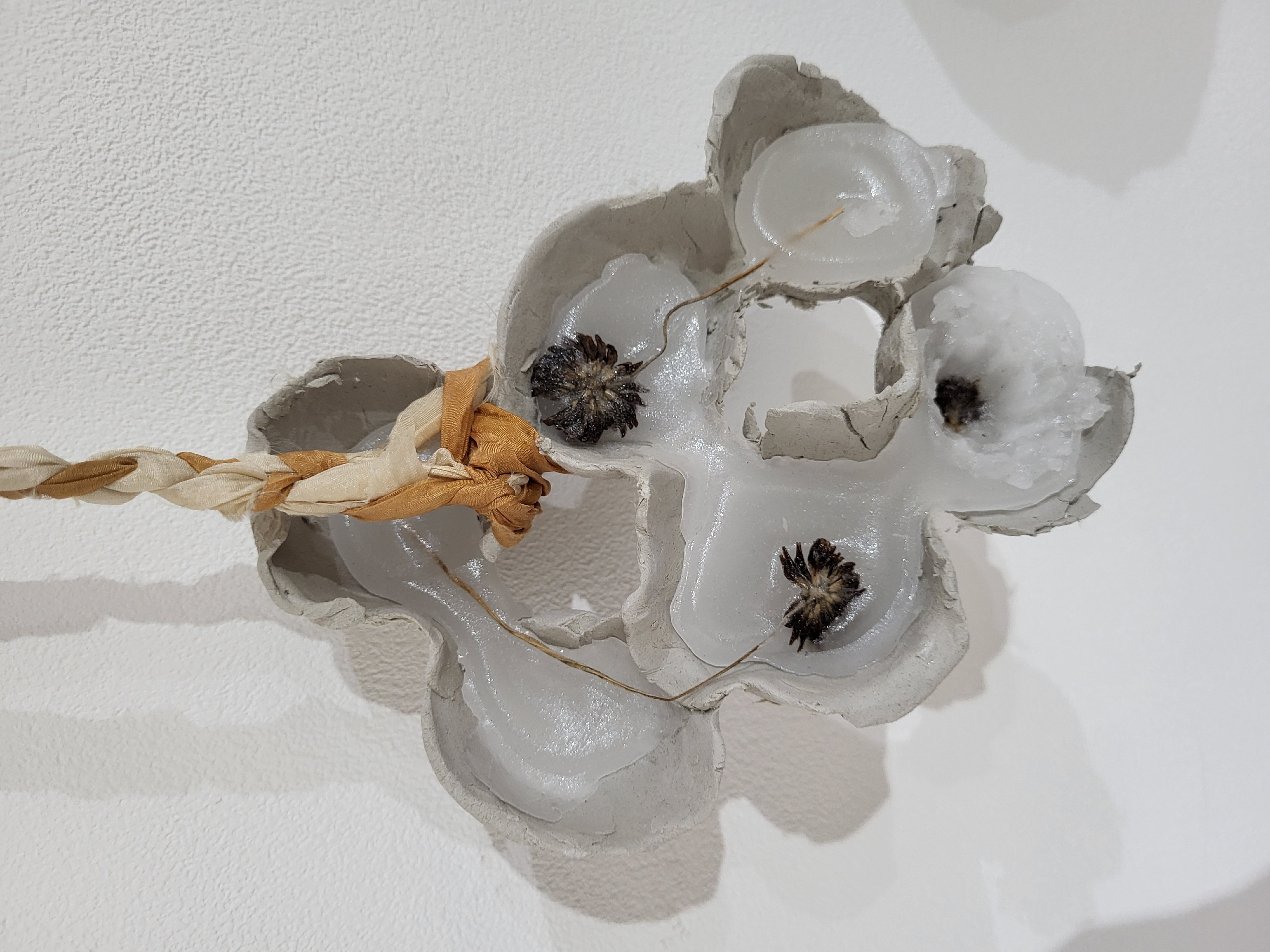 Scarfmaker’s silk, plaster of paris, foraged materials, twine, clay, wax
